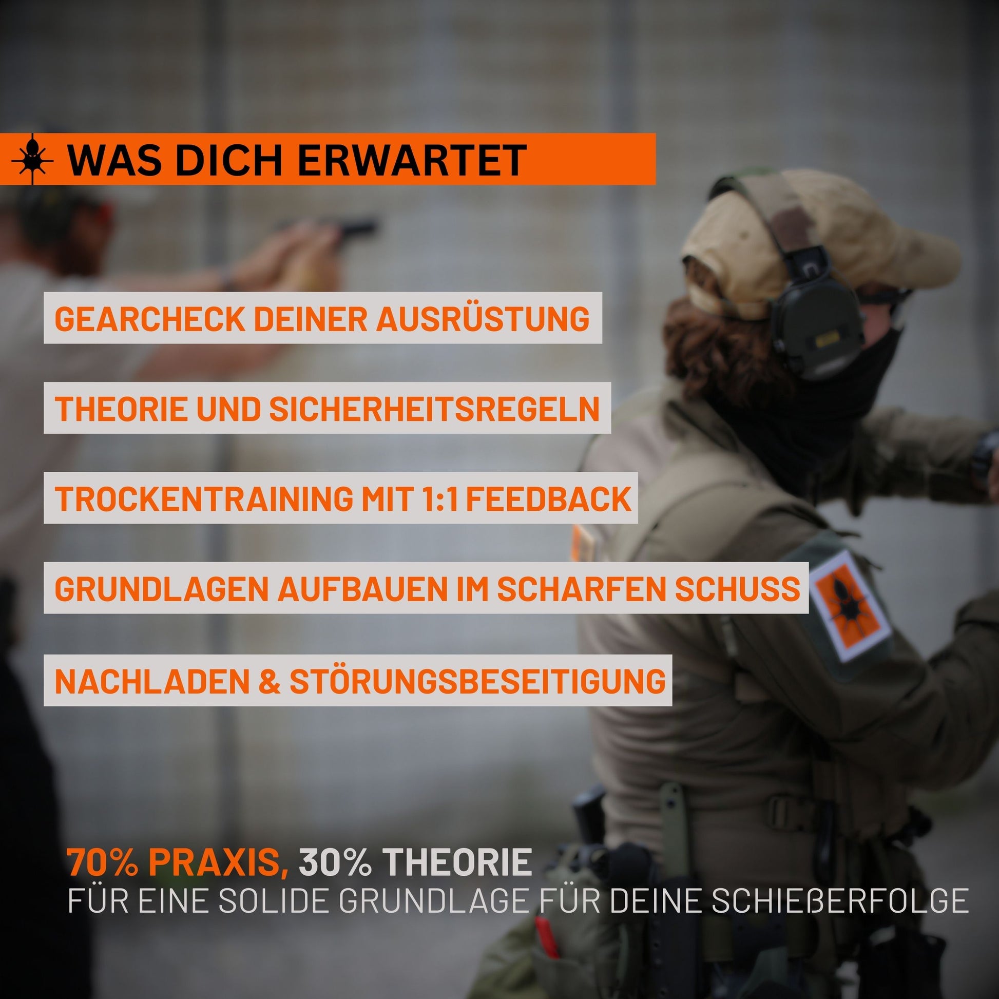 - Am Kurstag wirst du von unserem Partner auf der Shooting Range in Empfang genommen und durch den Kurs begleitet.