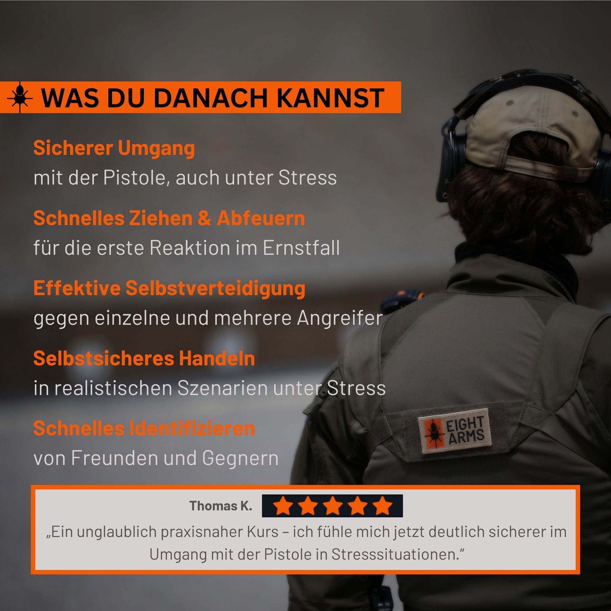 - Am Kurstag wirst du von unserem Partner auf der Shooting Range in Empfang genommen und durch den Kurs begleitet.